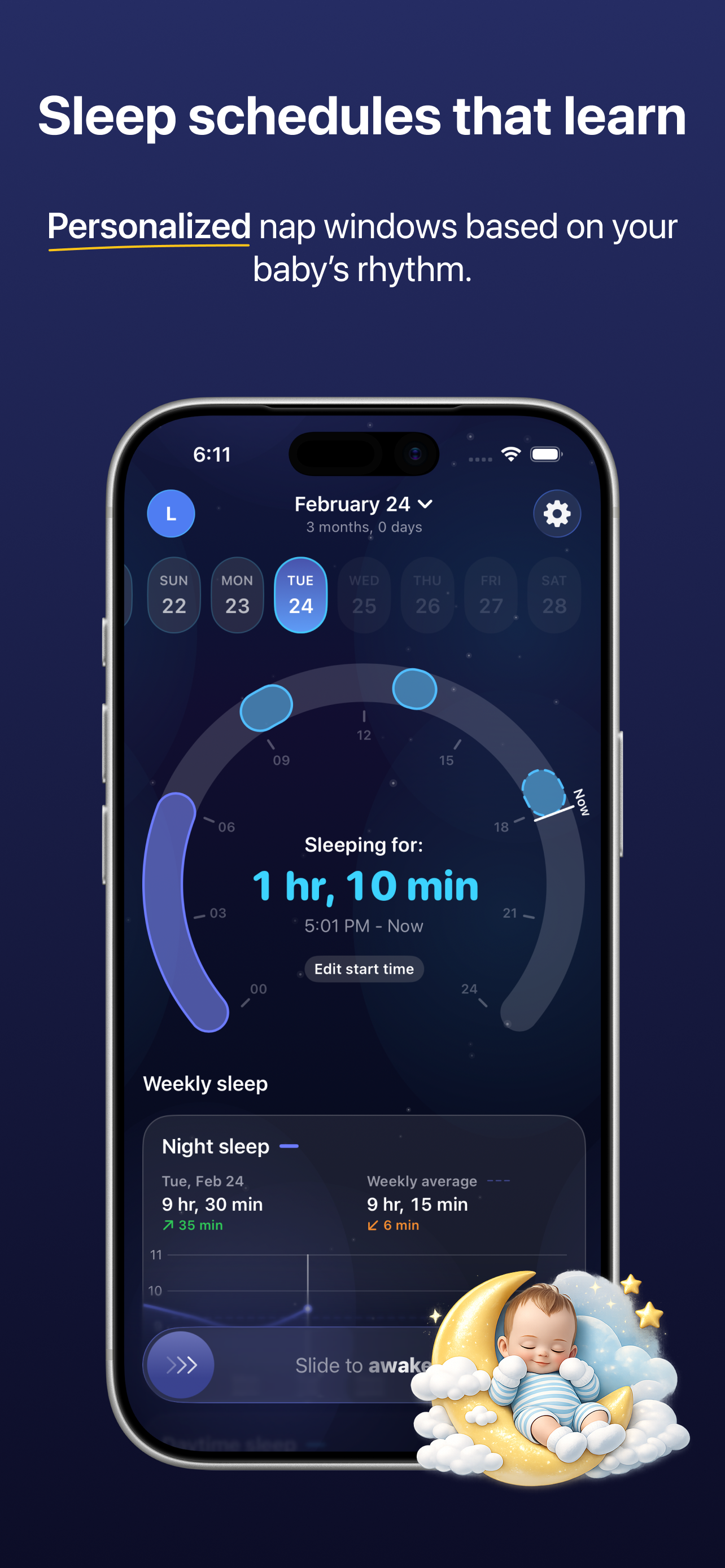Sleep schedules that learn with your baby.